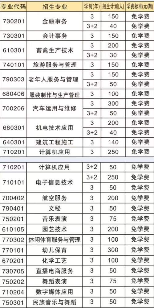 备注:就读“3+2”的学生,前3年中职免学费,后2年按对应高职院校标准收费。