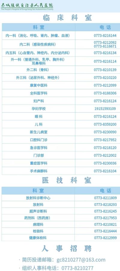 恭城瑶族自治县人民医院临床(医技)科室电话大全表