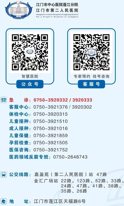 江门市第二人民医院便民就医服务热线是多少?江门市中心医院蓬江分院的医疗服务电话是多少?
