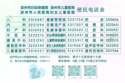滨州市妇幼保健院(滨州市儿童医院)便民电话表: