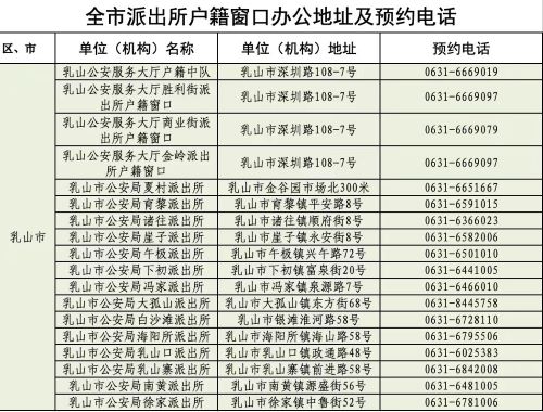 为切实做好户籍窗口服务工作,为广大居民提供高效服务,现将威海乳山市各派出所户籍窗口咨询预约电话和办公地址信息表格公布如下: