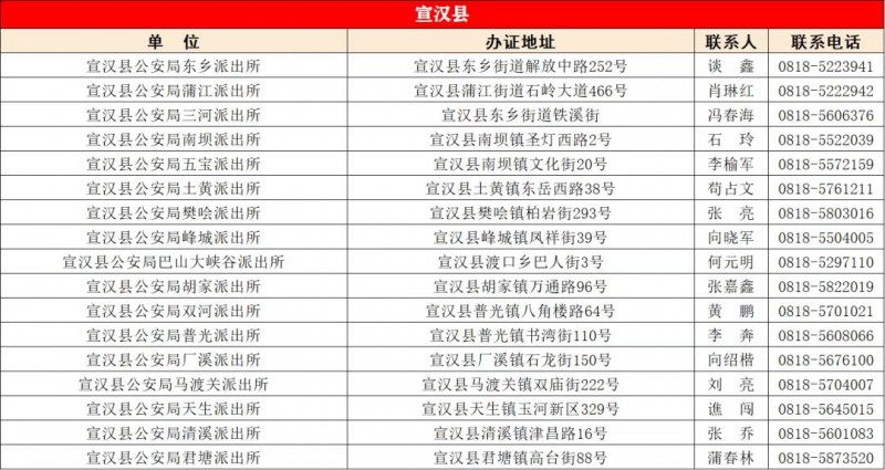达州市宣汉县户政热线(宣汉县各派出所户籍窗口地址和联系电话)信息表如下: