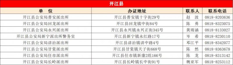 达州市开江县户政热线(开江县各派出所户籍窗口地址和联系电话)信息表如下: