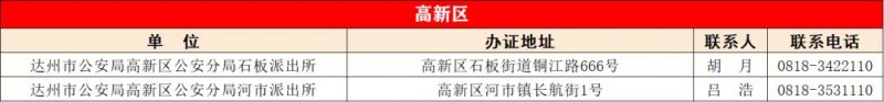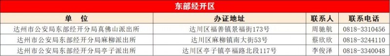 达州市东部经济开发区各派出所户籍窗口地址和联系电话如下: