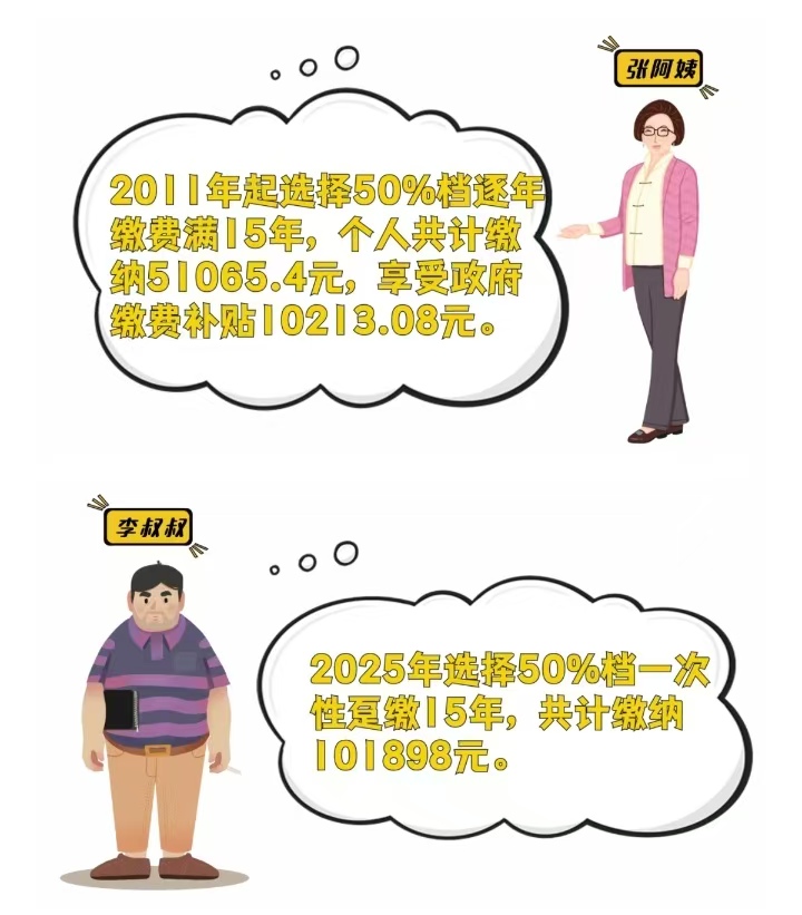 从对比数据中我们可以看出,李叔叔比张阿姨多缴了50832.6元、逐年缴纳15年比一次性趸缴15年要划算。