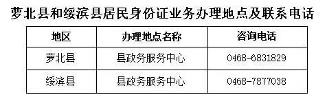 鹤岗市绥滨县政务服务中心居民身份证业务办理点咨询电话