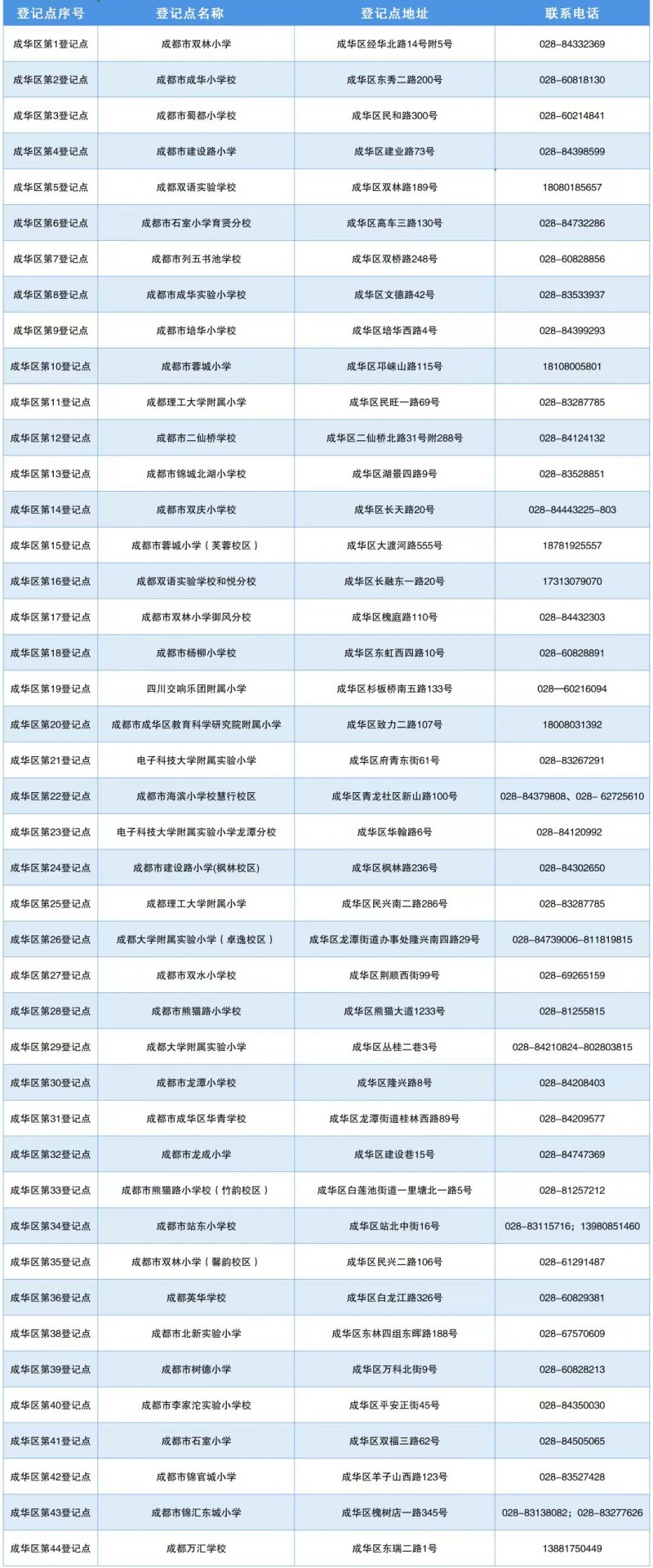 成都市成华区2025年小学户籍适龄儿童入学现场资料审核登记点一览表
