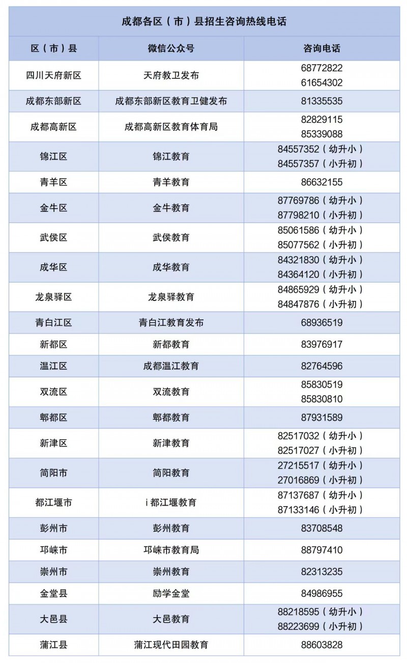 成都市招生热线(成都市各区市县教育主管部门招生咨询热线电话)大全: