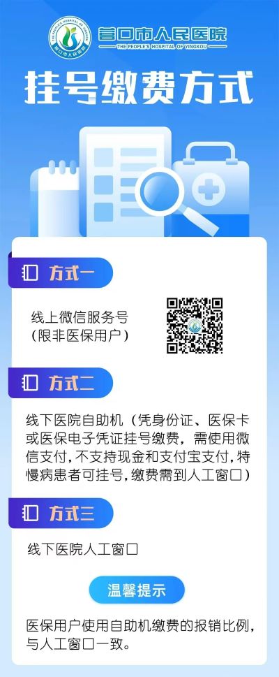 提示:关于营口市人民医院网上挂号缴费方式的信息作出免责声明:关于此信息作出免责声明,此信息图文仅供参考,小编不承担任何法律责任。此信息来源于有关机构的公开内容,在此经过整理并转载,唯一的目的是通过互联网传播便民惠民信息。由于时间等原因,难免使信息发生变更,此信息如有侵权,或者差错,请联系删除,直接联系秋果黄页网客服电话(187-8199-3958微信同号),一定会及时删除和修正。