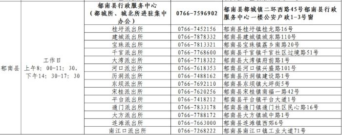 郁南县行政服务中心户政窗口和各派出所户政窗口咨询电话表如下: