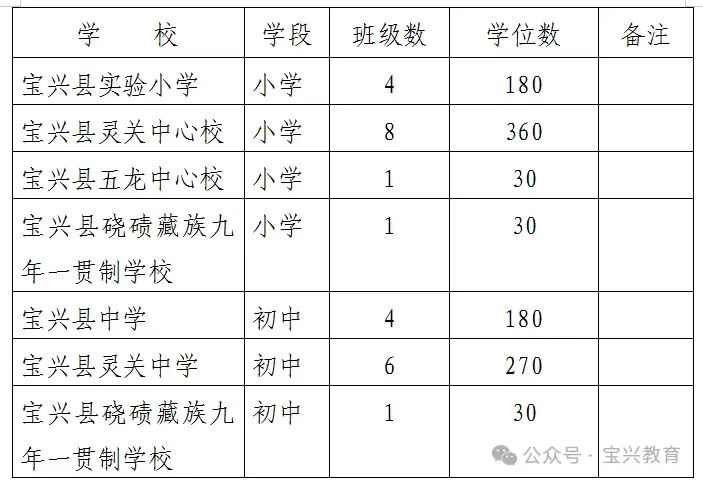 四川宝兴县2025年义务教育阶段学校入学招生事项公告