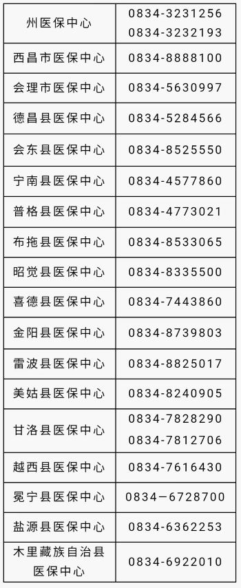凉山州医保中心业务咨询服务电话0834-32312560834-3232193