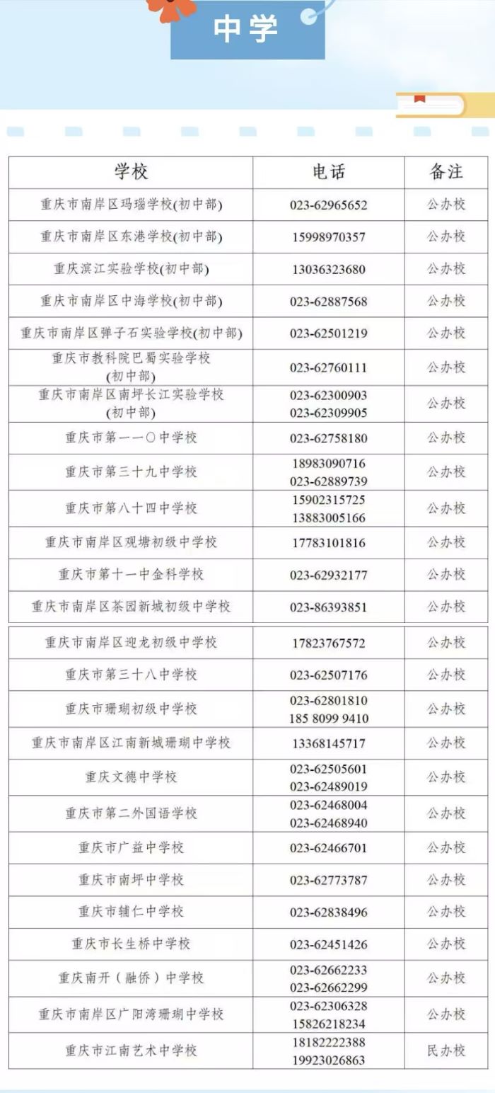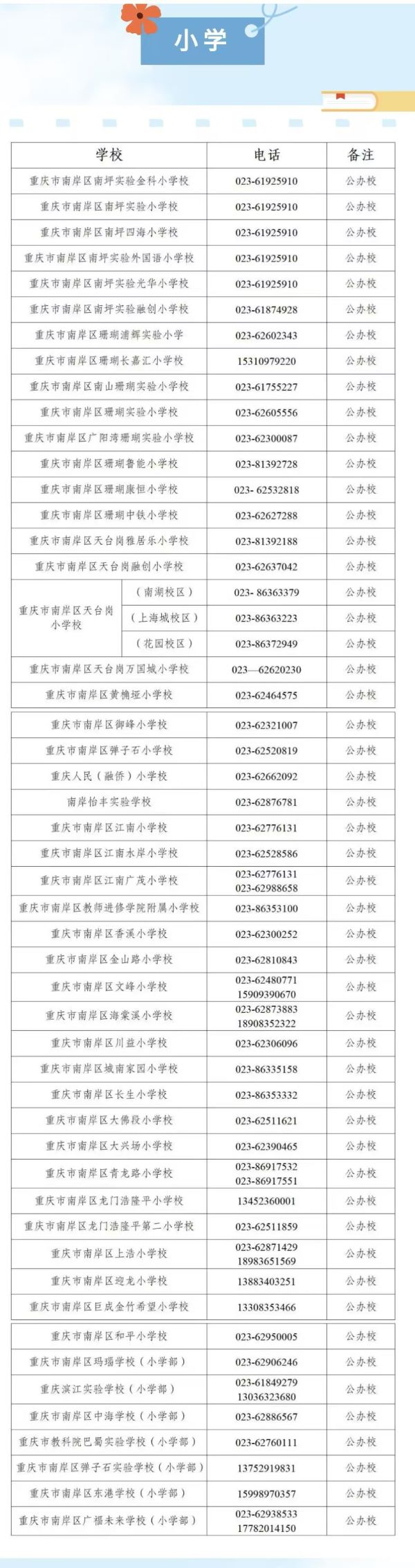 说明:关于2025年重庆市南岸区义务教育学校招生入学政策咨询电话的信息仅供参考。