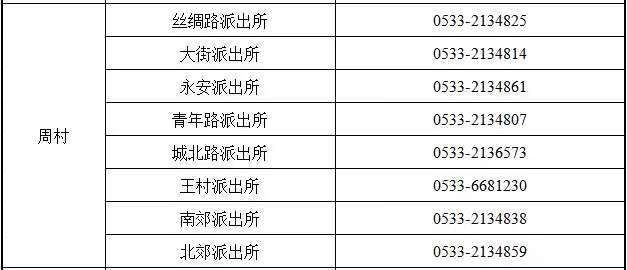 四,淄博市周村区各属地派出所户籍业务咨询预约电话: