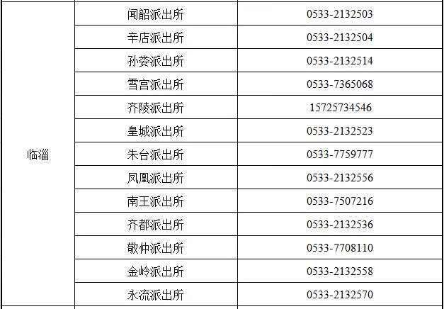 五,淄博市临淄区各属地派出所户籍业务咨询预约电话: