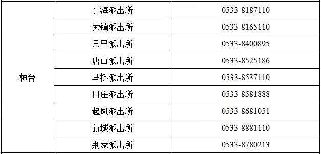 六,淄博市桓台县各属地派出所户籍业务咨询预约电话: