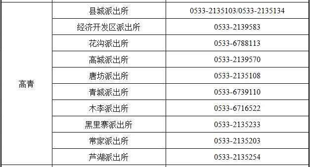 七,淄博市高青县各属地派出所户籍业务咨询预约电话: