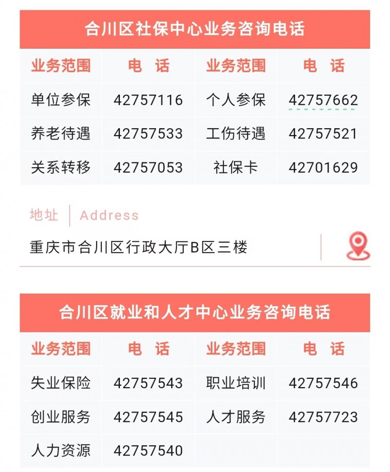重庆市合川区人力资源和社会保障局就业和人才中心业务咨询电话:
