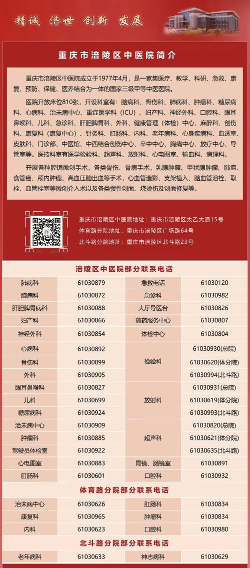 重庆市涪陵区中医医院各个科室联系电话汇总如下:
