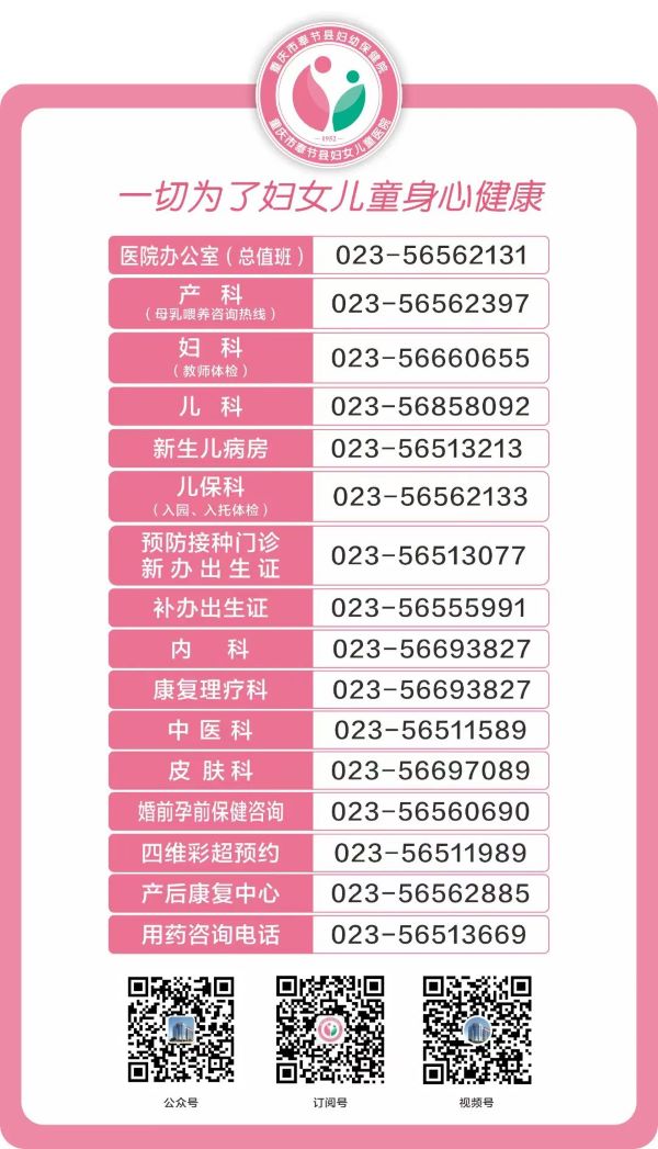 奉节县妇幼保健院主要科室联系电话如下: