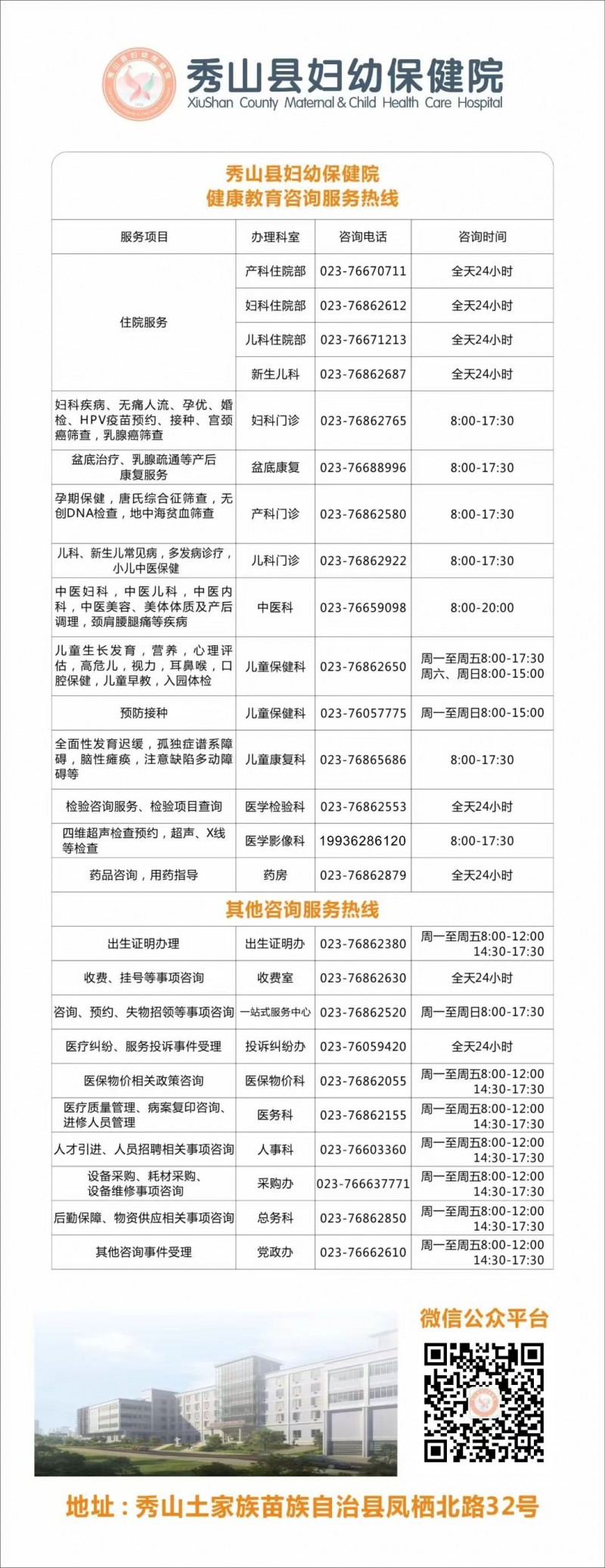 秀山县妇幼保健院健康教育咨询服务热线