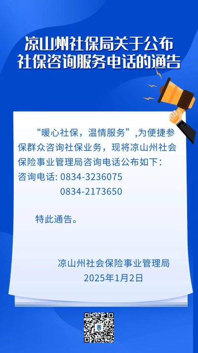 说明:关于凉山州社保局社保咨询服务电话通告的信息仅供参考。