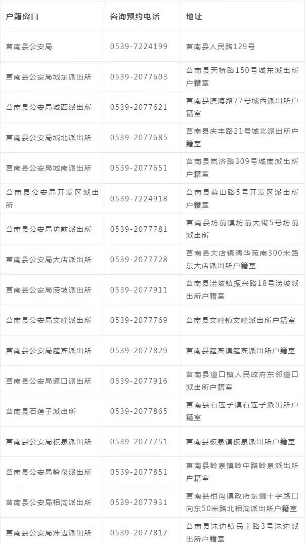 莒南县户政热线(莒南县各派出所户籍室咨询电话)信息表如下: