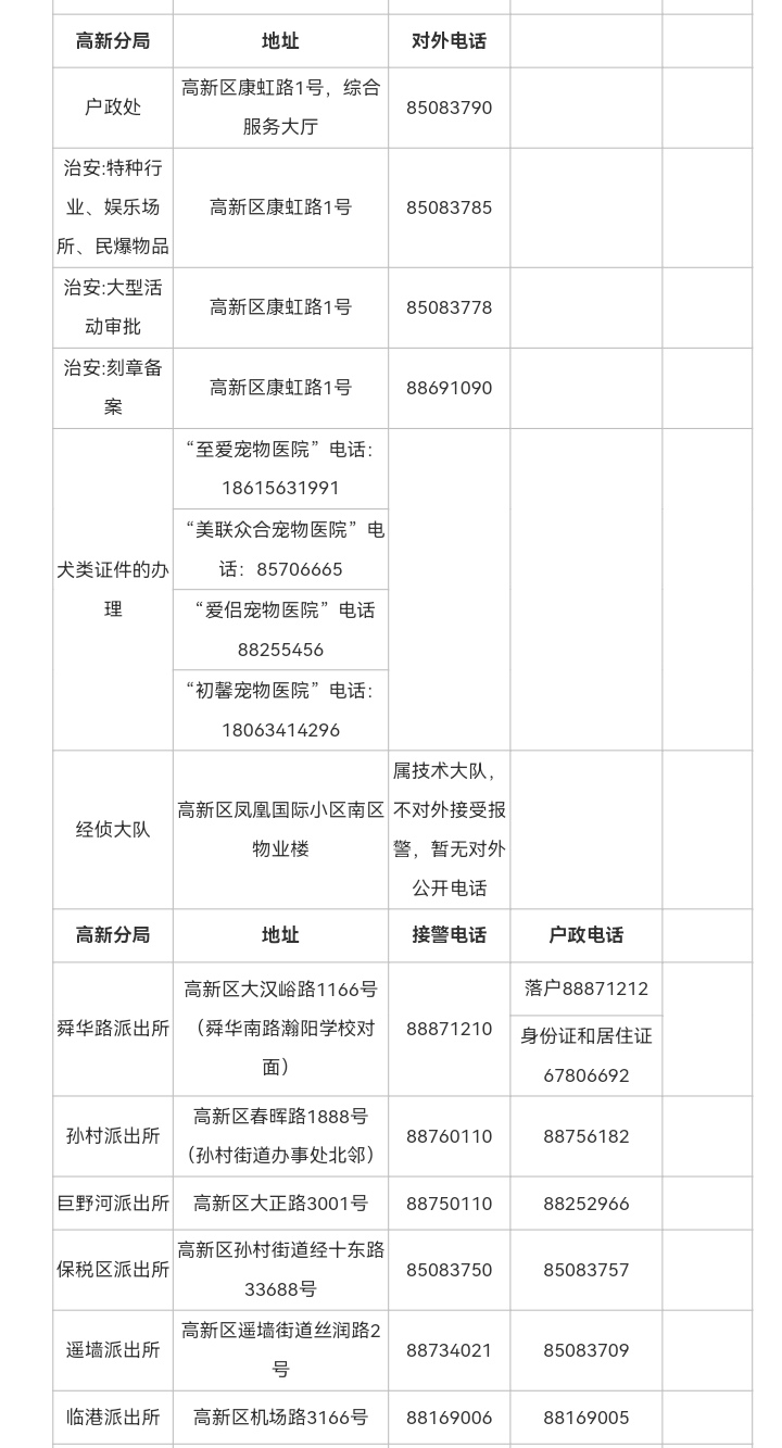 济南市高新区范围内各派出所接警电话和户政窗口业务咨询电话