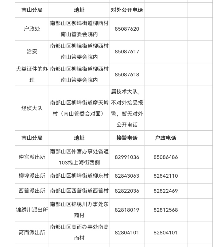 八,济南市南部山区各派出所接警电话和户政窗口电话信息表: