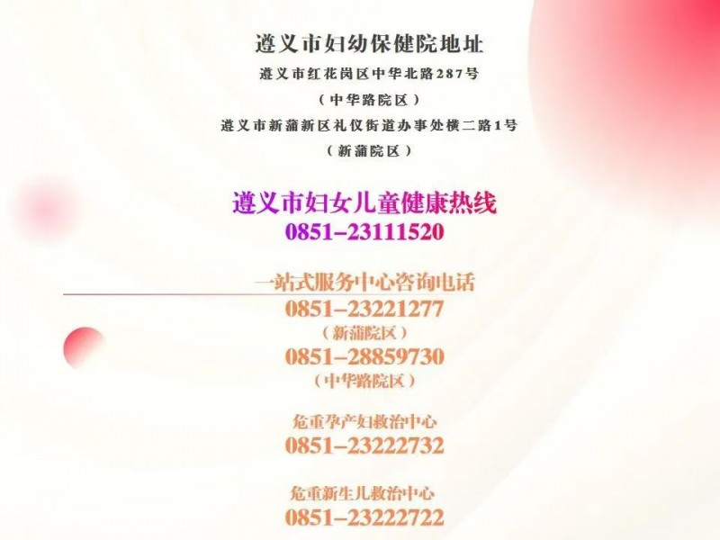遵义市妇幼保健院妇女儿童健康热线是0851-23111520