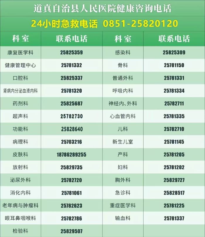 说明:关于道真自治县人民医院健康咨询电话一览表的信息仅供参考。