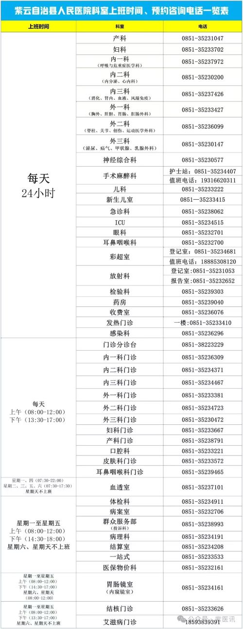 为了进一步提升医疗服务质量,方便广大市民就医咨询,现将紫云自治县人民医院各科室咨询电话一览表公布如下: