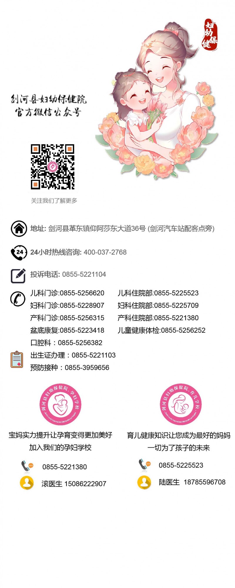 为了进一步提升医疗服务质量,方便广大市民就医咨询,现将剑河县妇幼保健院各科室联系电话公布如下: