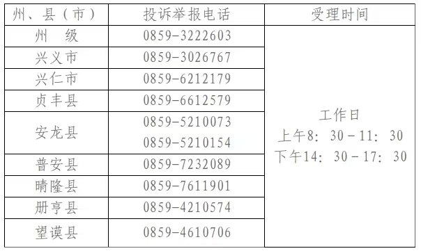 黔西南州各级卫生用品监督投诉举报电话:为全面规范卫生用品生产经营行为,加强卫生用品监管,畅通投诉举报渠道,充分发挥社会监督作用,切实维护人民群众健康权益,现将黔西南州全州各级卫生用品监督投诉举报电话公布如下,欢迎社会各界积极如实向辖区卫生健康部门反映卫生用品生产经营单位违法违规行为线索,共同营造风清气正的卫生用品生产消费环境。