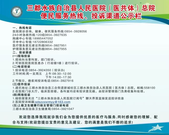 三都水族自治县人民医院便民服务热线和投诉渠道: