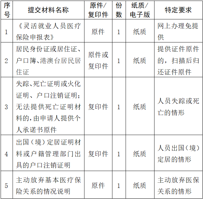 灵活就业人员医疗保险申报材料