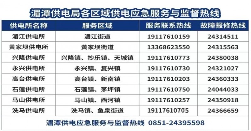 说明:关于湄潭县供电局各区域供电应急服务与监督热线电话的信息仅供参考。