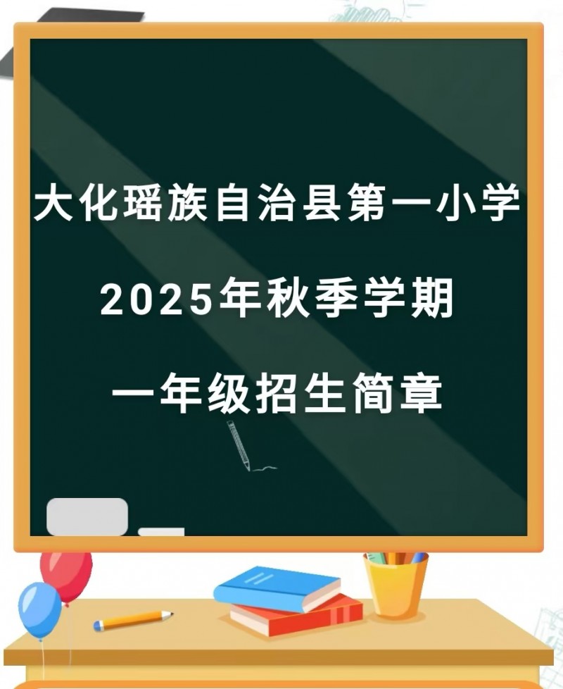 根据《教育部办公厅关于开展义务教育阳光招生专项行动(2025)的通知》(教基厅函〔2025〕5 号)、《自治区教育厅关于做好 2025 年义务教育阶段新生入学“一件事”改革落地实施工作的通知》(桂教基教〔2025〕5 号)和《自治区教育厅关于做好 2025 年义务教育阳光招生工作的通知》(桂教基教〔2025〕9 号)精神,结合我校实际,现将大化瑶族自治县第一小学校2025年秋季学期一年级新生招生简章公布如下: