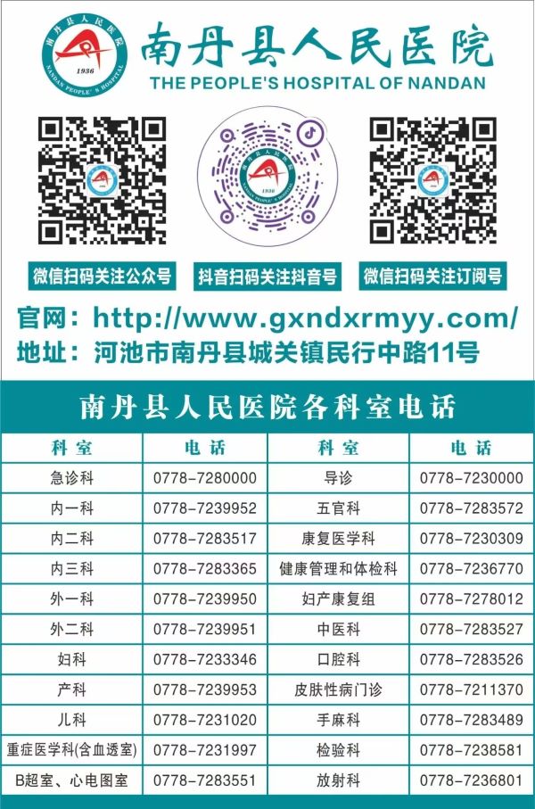 为了进一步提升医疗服务质量,方便广大市民群众就医咨询,现将南丹县人民医院各科室联系电话表公布如下: