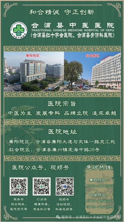 提示:关于合浦县中医医院两个院区地址和主要科室联系电话的信息作出特别说明:本信息立足为社会大众提供有价值的参考资料和办事指南等公共信息,部分图文来源于网络或者有关机构公开内容,属于公益性的分享与传播。虽然尽力确保内容的准确性和实效性,但由于各种因素,难免存在疏忽和差错,敬请不吝赐教,欢迎相互交流,共同学习。对信息中陈述、观点判断保持中立,版权属原作者所有,如涉侵权或者差错等问题,请联系网络信息推广平台秋果黄页网客服(187/8199/3958微信同号),一定会及时删除或者修正。谢谢!