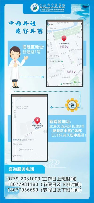 说明:关于北海市中医医院对外咨询服务电话的信息作出特别说明:本信息立足为社会大众提供有价值的参考资料和办事指南等公共信息,部分图文来源于网络或者有关机构公开内容,属于公益性的分享与传播。虽然尽力确保内容的准确性和实效性,但由于各种因素,难免存在疏忽和差错,敬请不吝赐教,欢迎相互交流,共同学习。对信息中陈述、观点判断保持中立,版权属原作者所有,如涉侵权或者差错等问题,请联系网络信息推广平台秋果黄页网客服(187/8199/3958微信同号),一定会及时删除或者修正。谢谢!