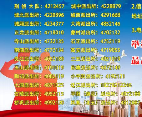 提示:关于来宾市兴宾区各个辖区派出所联系电话大全的信息作出特别说明:本信息立足为社会大众提供有价值的参考资料和办事指南等公共信息,部分图文来源于网络或者有关机构公开内容,属于公益性的分享与传播。虽然尽力确保内容的准确性和实效性,但由于各种因素,难免存在疏忽和差错,敬请不吝赐教,欢迎相互交流,共同学习。对信息中陈述、观点判断保持中立,版权属原作者所有,如涉侵权或者差错等问题,请联系网络信息推广平台秋果黄页网客服(187/8199/3958微信同号),一定会及时删除或者修正。谢谢!