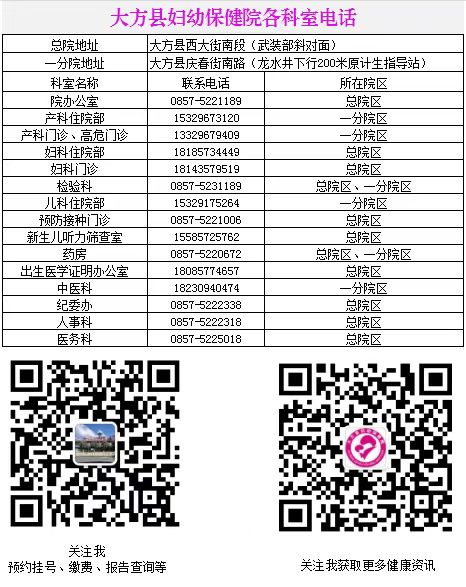 为了进一步提升医疗服务质量,方便广大市民就医咨询,现将大方县妇幼保健院各科室联系电话公布如下: