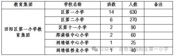 附:2025年百色市田阳区第一小学教育集团新生招生计划表