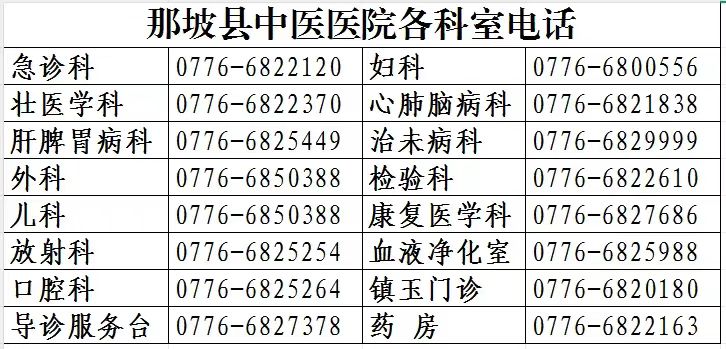 那坡县中医医院地址:那坡县幸福大道1号,那坡县中医医院院办电话:0776-6823889
