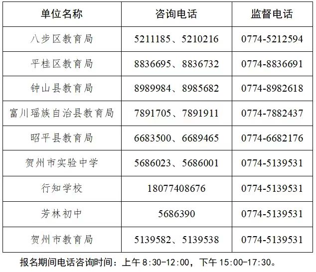 说明:关于2025年贺州市义务教育学校入学招生报名及咨询监督电话的信息仅供参考。