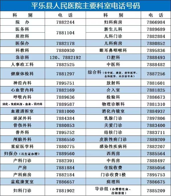 说明:关于平乐县人民医院主要科室电话号码信息作出特别说明:本信息立足为社会大众提供有价值的参考资料和办事指南等公共信息,部分图文来源于网络或者有关机构公开内容,属于公益性的分享与传播。虽然尽力确保内容的准确性和实效性,但由于各种因素,难免存在疏忽和差错,敬请不吝赐教,欢迎相互交流,共同学习。对信息中陈述、观点判断保持中立,版权属原作者所有,如涉侵权或者差错等问题,请联系网络信息推广平台秋果黄页网客服(187/8199/3958微信同号),一定会及时删除或者修正。谢谢!