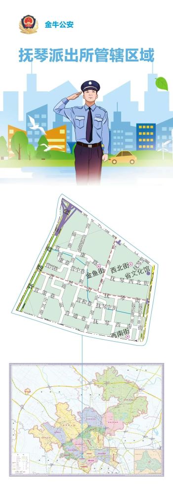 成都市金牛区抚琴派出所管辖区域属于抚琴街道办事处,含西北街社区、金鱼街社区、西南街社区。办公地址:抚琴西南路6号,报警电话:028-87784291