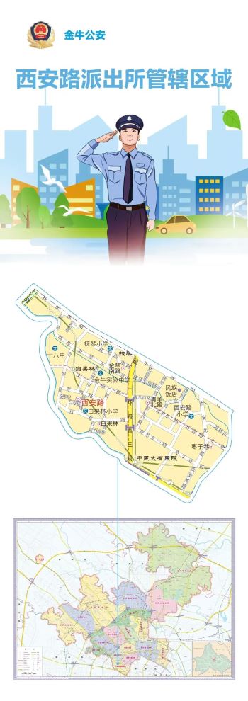 成都金牛区西安路派出所管辖区域属于西安路街道办事处,含枣子巷社区、青羊北路社区、白果林社区、金琴南路社区。办公地址:西安北路108号,报警电话:028-87761454