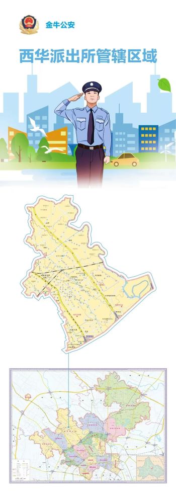 成都金牛区西华派出所管辖区域属于西华街道办事处,含青杠社区、兴瓦社区、府河新居社区、富家社区、金罗社区、跃进社区、金牛社区、涧漕社区、侯家社区、兴盛社区。办公地址:华丰路333号,报警电话:028-87549110
